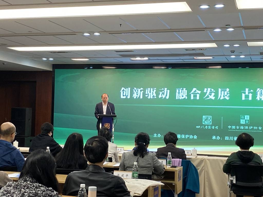 11月11日,“创新驱动 融合发展——古籍保护技术研讨会”在四川省图书馆举行。四川省图书馆馆长何光伦、四川省文化和旅游厅副厅长赵红川、中国古籍保护协会会长刘惠平出席开幕式并发表致辞。各古籍保护专家和技术应用单位在会上交流探讨,对国家古籍保护工作“十四五”期间的快速发展建言献策。
