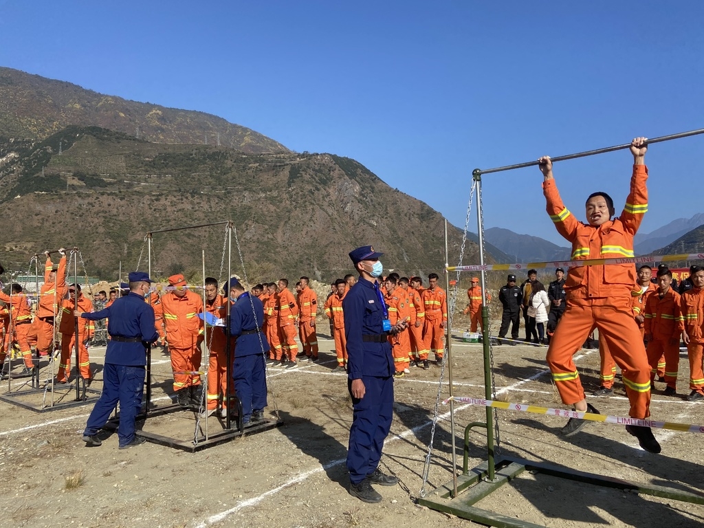 单、双杠比赛主要考验个人身体素质。来自泸定县森林草原防灭火大队的19岁年轻队员宁明垚引体向上一口气完成25个,有效成绩20个。宁明垚今年9月退伍回乡,加入到泸定县森林草原防灭火大队才1个月。“在队里平时训练和当兵时差不多,体能锻炼没有落下。”宁明垚说到,“训练时引体向上最多可以做到28个。”
