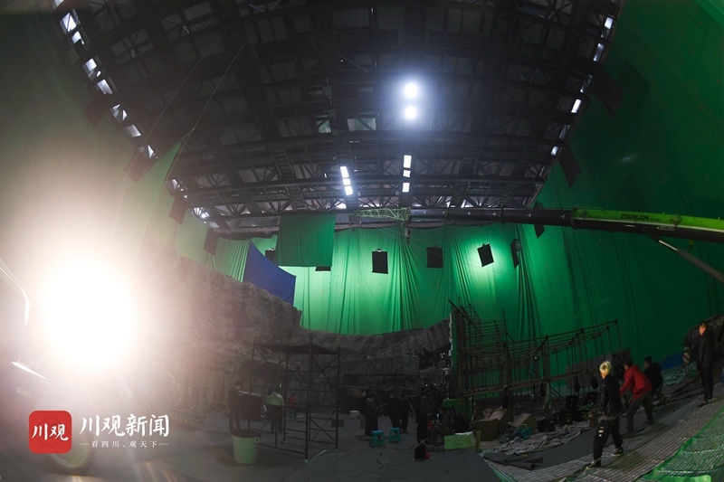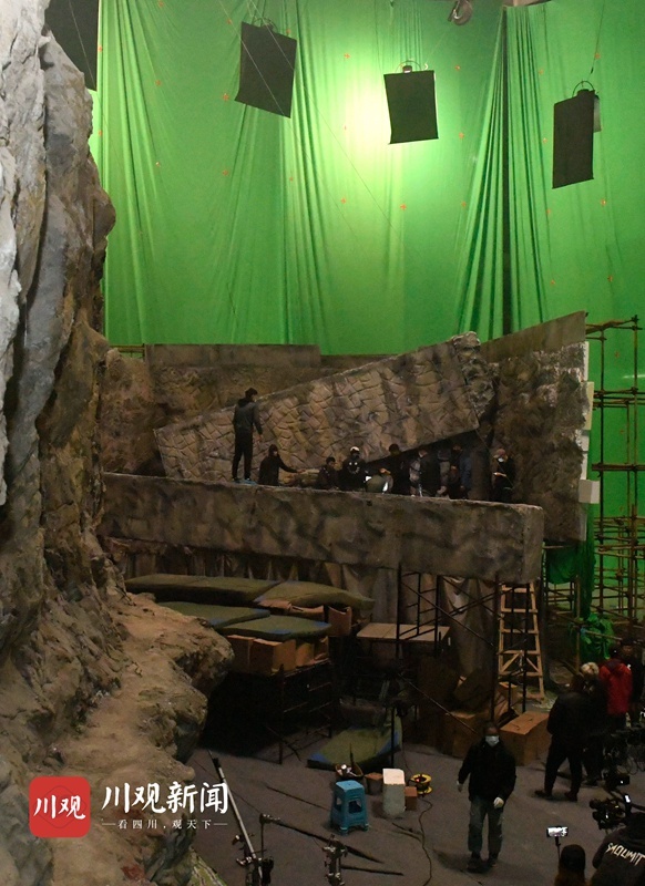 11月11日,在位于“成都影视城”的影视硅谷摄影棚群落,影视剧组正在拍摄考古探险类电影《藏地奇兵》,现场一片忙碌。