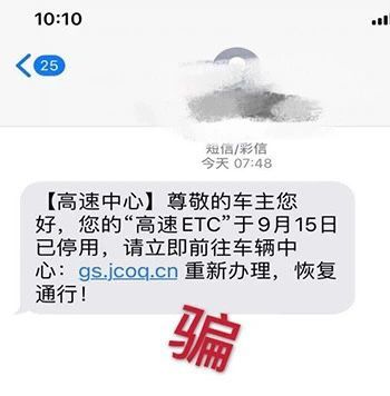 记者走访四川省高速公路ETC监控结算中心得知,这是新出现的一种欺骗手段,这种诈骗短信不要信!