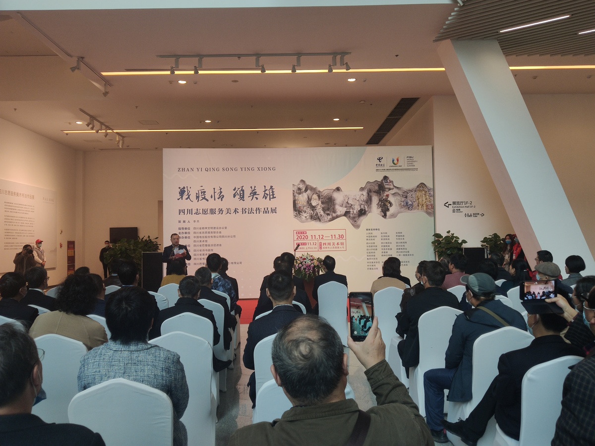 11月12日,“战疫情 颂英雄——四川志愿服务美术书法作品展”在四川美术馆开幕,展出抗疫主题作品164幅。其中,特邀作品26幅,中国画50幅,油画24幅,书法17幅,水彩画、版画、宣传画、剪纸、钢笔画等共21幅,崔治中主题作品26幅。