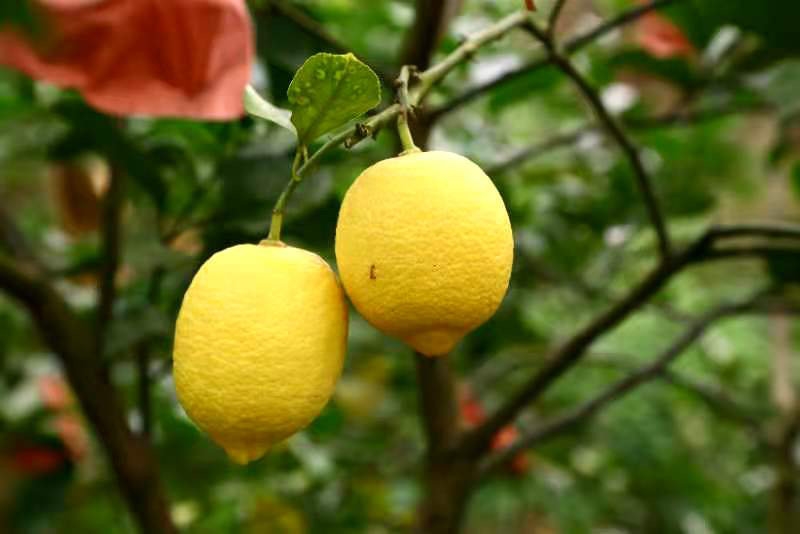 盐溪口村的柠檬主要种植的品种是尤力克,一年产一季。“这个品种的柠檬,未成熟的也可以卖个好价钱”,村党支部书记徐志雄拿着一黄一绿两颗柠檬介绍道:“黄色是成熟的柠檬,马上就要上市了,直接销售到市场或者进入超市。这种青色的柠檬,没有套袋的第二批果子,我们准备把这种青柠檬摘下来做成干片,也可以进入市场销售,不用丢掉。”