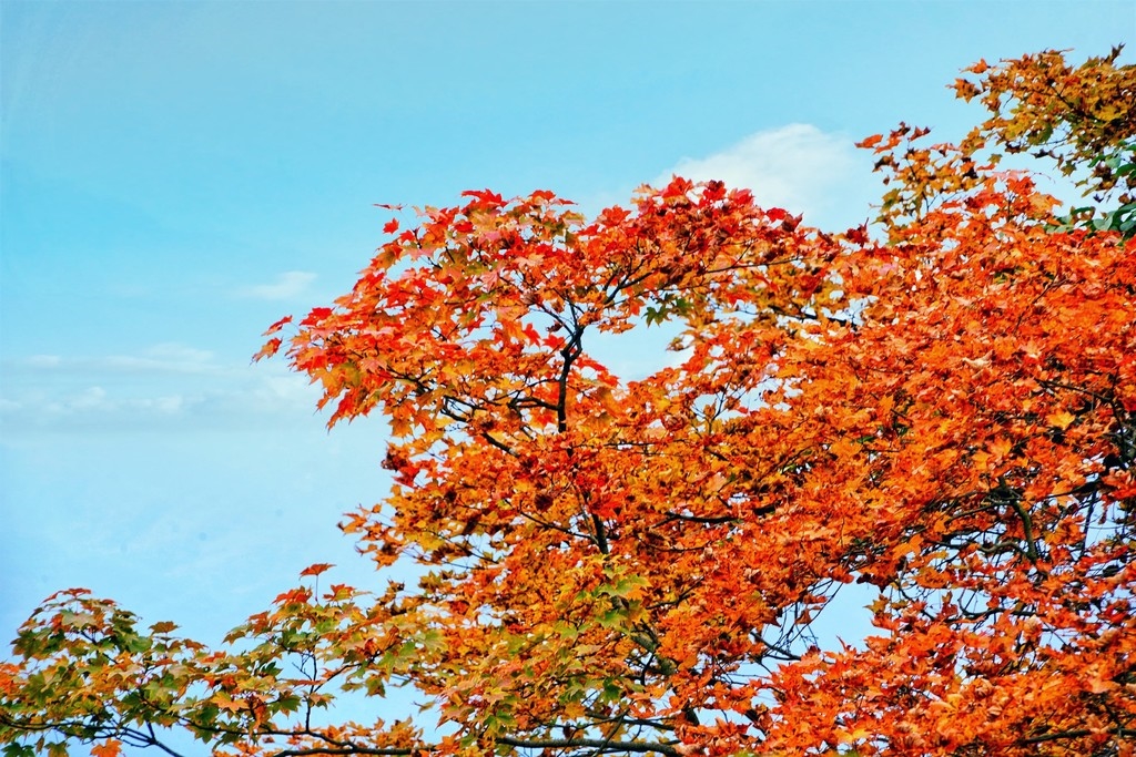 位于眉山市洪雅县的瓦屋山是亚洲最大的桌山,海拔2830米,具有良好的生态环境,是动植物的天堂,拥有各类植被3600余种,每年10月下旬起,漫山遍野树叶通红,映衬着蓝天白云,组成一幅色彩艳丽的金秋图画。如今这里已形成“春看杜鹃 ,夏观飞瀑,秋赏红叶,冬玩雪”的旅游格局。