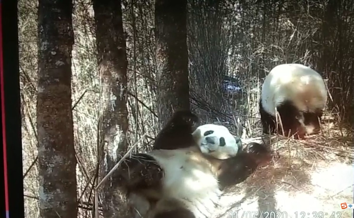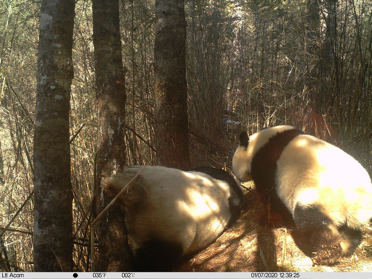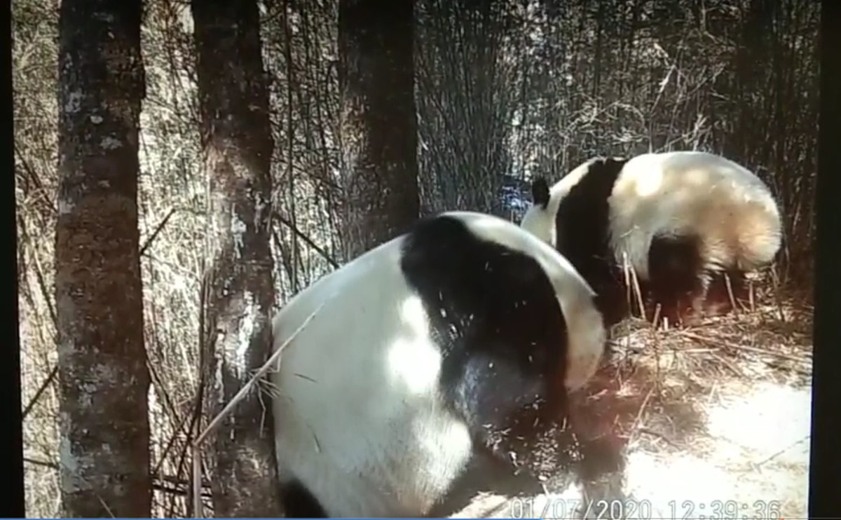 野生动物保护专家认为,由于该位点相机时间设置上有一定偏差,按照实际推断该画面出现时间应为4月份。该季节正是野生大熊猫的繁殖季节,两只成年熊猫一起,之间没有打斗,非常和谐,可以初步推断画面中的2只大熊猫很可能是正在求偶玩耍的一雄一雌个体。