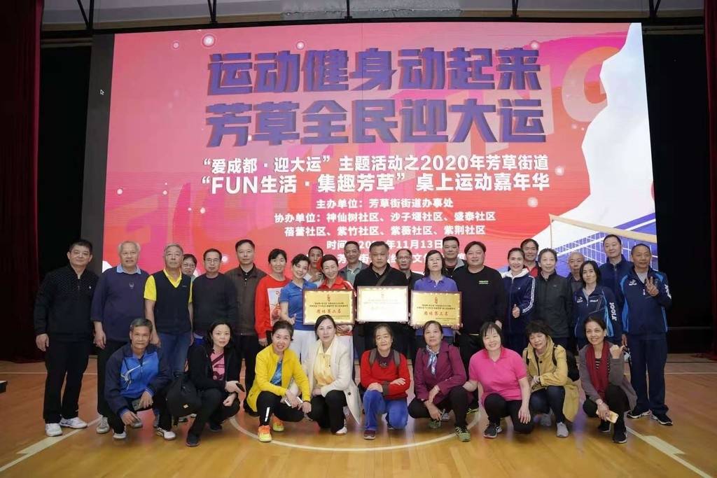 11月13日,由成都市高新区芳草街街道办主办的“爱成都·迎大运”主题活动之2020年芳草街道“FUN生活·集趣芳草”桌上运动嘉年华活动在芳草街街道综合文化活动馆举行。早上九点,包括神仙树社区、紫薇社区、紫竹社区、紫荆社区、蓓蕾社区、沙子堰社区及盛泰社区在内的7个社区10个代表队共60余名运动员参加本次运动嘉年华活动。在裁判员宣布比赛规则后,本次“爱成都·迎大运”主题活动之2020年芳草街道“FUN生活·集趣芳草”桌上运动嘉年华活动正式开始。比赛项目为乒乓球混合团体赛、桌上冰球;桌上沙壶球和桌上足球为体验项目。运动员在球桌上全力拼搏,挥汗如雨,运动员们遇强则强,比分紧追不舍,在场观众也为选手的精彩对决喝彩鼓舞。