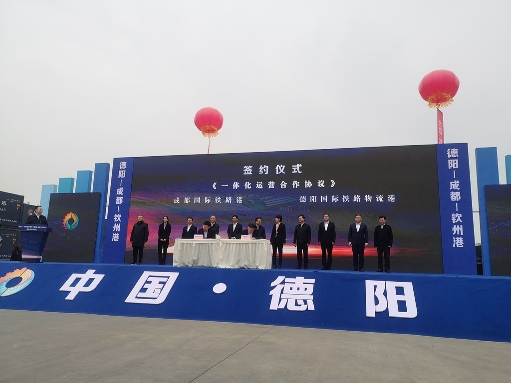 为推进下一步合作,发车仪式上,成都国际铁路港与德阳国际铁路物流港签署《一体化运营合作协议》。此外,中国铁路成都局集团有限公司绵阳车务段、成都市新都区智慧物流产业园还分别与后者签署协议,将在国际货物运量及运价优惠、共建现代物流产业园等方面展开探索。