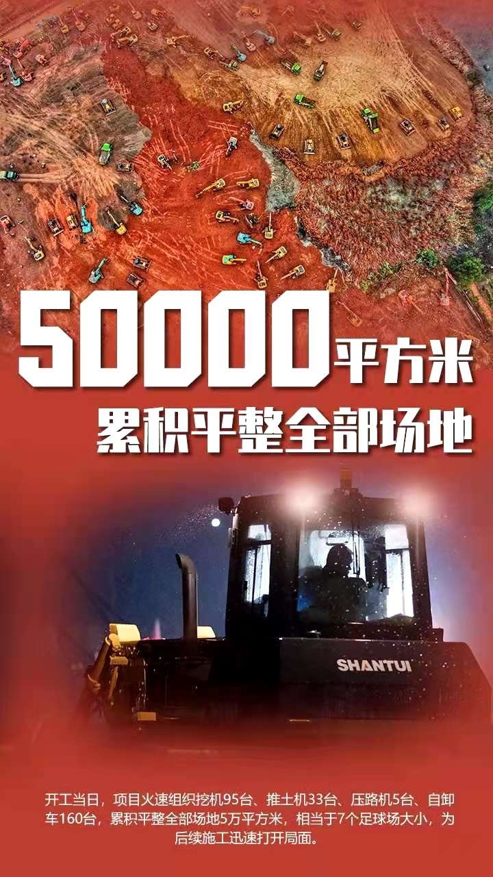 “仅用时40个小时,完成了近4万平方米的场平工作,为工程施工提供作业面赢得了宝贵时间。”周旭以《集结冲锋,极限40小时!》为题,带领大家一起重回今年1月23日那天的雨夜。