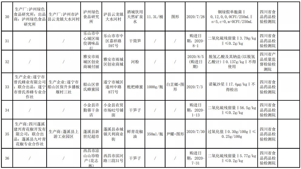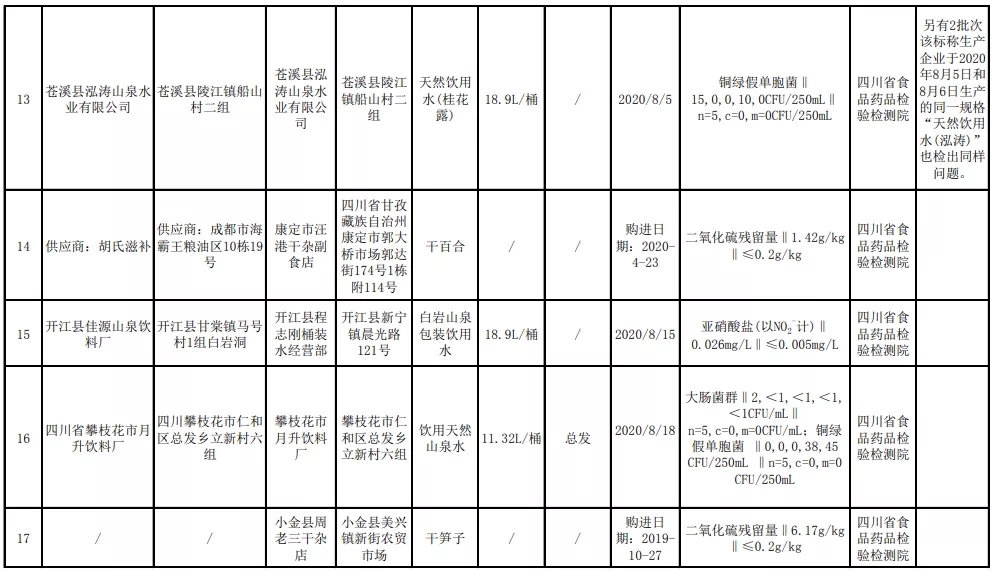 11月14日,记者从四川省市场监督管理局获悉,近期,该局组织食品安全监督抽检,抽取饮料、肉制品、粮食加工品、蜂产品、淀粉及淀粉制品、调味品、蔬菜制品、罐头、糕点、乳制品、食用农产品、炒货食品及坚果制品、水果制品等13大类食品634批次样品,检出42批次样品不合格。