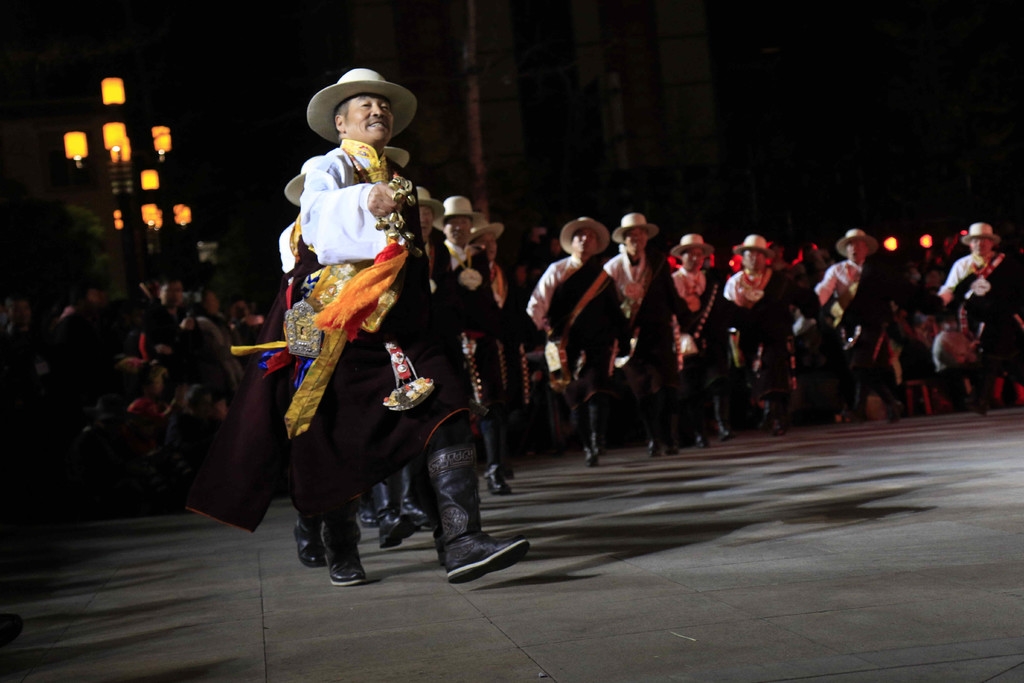 随后的文艺演出中,蒲溪羌族锅庄《热嘎咪咪》向人们展示了羌族这一古老民族悠久的历史文化内涵的同时,也在质朴的旋律中用虔诚的舞步祈求家乡风调雨顺、家庭和谐美满。五屯藏族锅庄《齐啦扎日热尼》不仅展现了藏族“五屯文化”传统习俗与歌舞艺术,更述说了如今生活在这里的藏族人民的幸福生活。在藏羌锅庄《跳吉祥》欢快的曲调中,藏、羌演员们邀请远道而来的宾客,一同加入狂欢的队伍,绕着熊熊的篝火,跳起欢快的理县藏羌锅庄,共同欢庆即将到来的羌历新年。