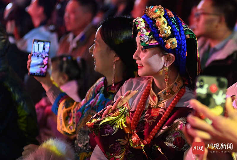 千百年来,在每一个辞旧迎新的日子里,藏羌儿女都会携手并肩,围绕着象征吉祥如意的火塘一圈一圈的跳起锅庄。晚会现场,米亚罗嘉绒藏族锅庄《吉祥如意》、蒲溪羌族锅庄《锅庄的母亲》还有五屯藏族锅庄《幸福山寨》和理县羌族锅庄《旋转的天空》······在这个美好夜晚,欢快的乐曲声中,当地藏羌儿女身穿多彩盛装,洋溢着幸福生活的笑脸,尽情舞出秋天的收获喜悦。