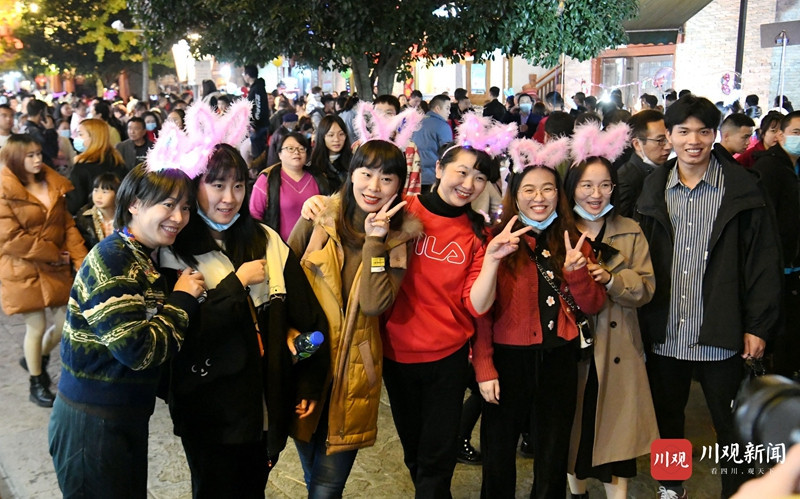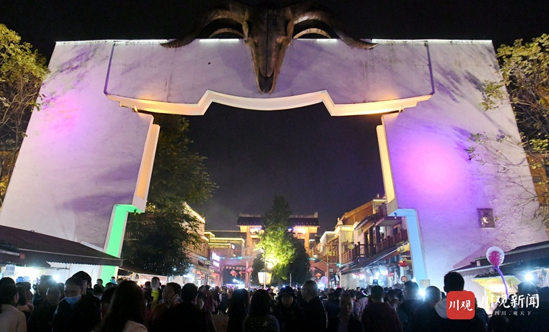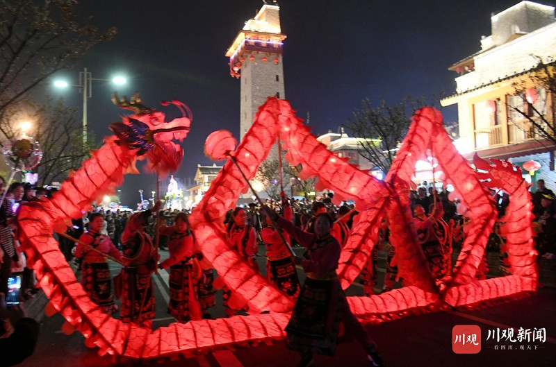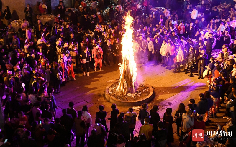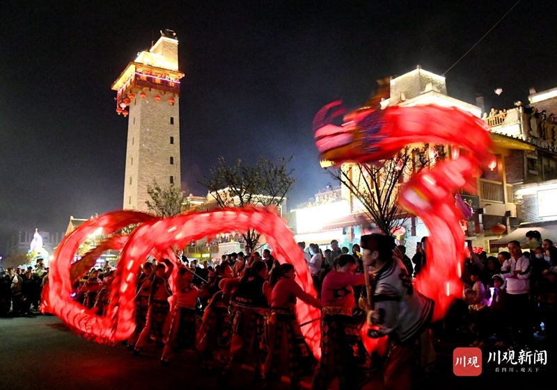游客们边吃当地美食,边看羌民歌舞、观红色长龙飞舞,和当地群众共同围着篝火跳起欢乐的民族舞,度过这个精彩纷呈的羌年之夜。