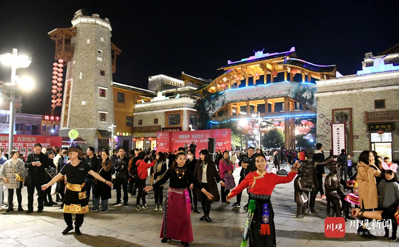 11月14日晚,恰逢羌历新年,北川县巴拿恰商业街周围灯火辉煌,羌族同胞们载歌载舞,欢庆新年。