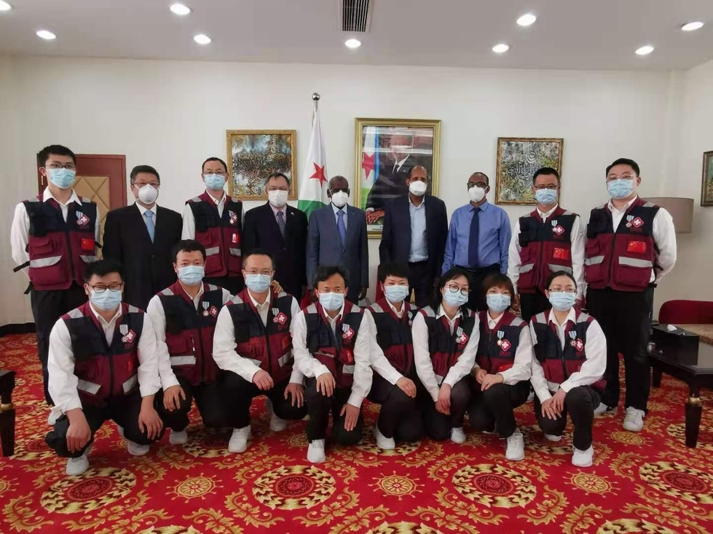 5月10日,吉布提总理卡米勒授予中国赴埃塞俄比亚和吉布提抗疫医疗专家组组长、四川大学华西医院副院长曾勇教授“军官级独立日勋章”及11名队员“骑士级独立日勋章”。无论是从勋章数量和礼仪规模上在吉布提历史上均不多见。吉布提总理为什么给来自四川的他们“点赞”?