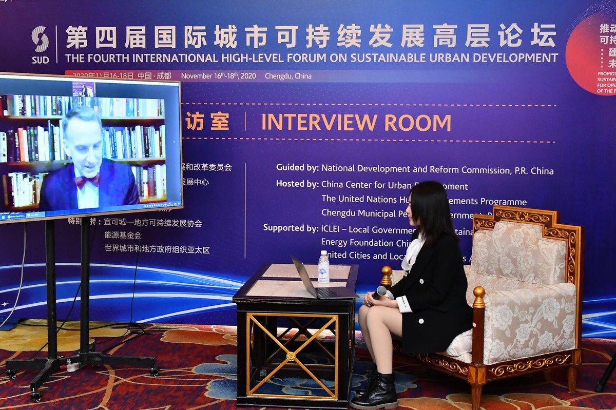 11月16日,在第四届国际城市可持续发展高层论坛上,哈佛大学教授爱德华·格雷泽接受了记者的专访,对后疫情时代城市的可持续发展提出见解。