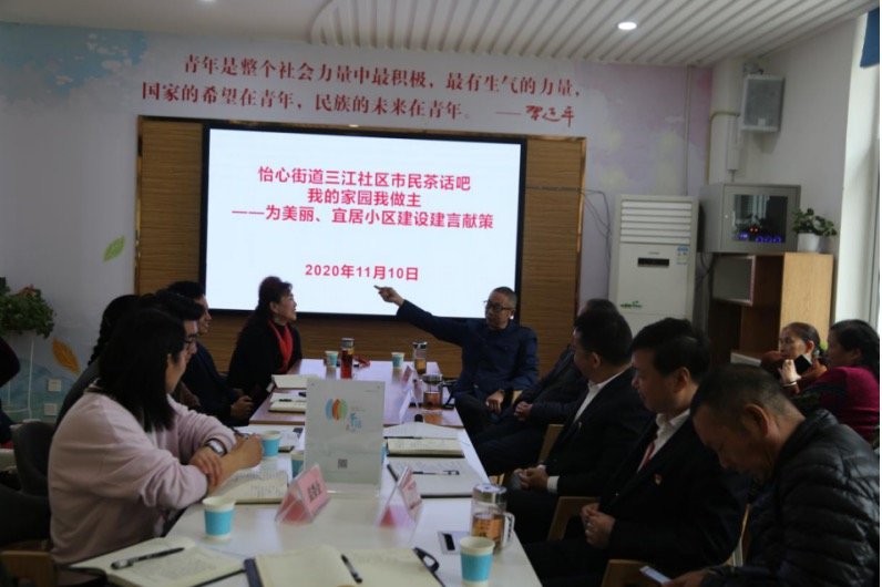 5天前,三江社区才举行了“市民茶话吧”活动,来自社区的党员、居民、两委干部、政协委员等20余人齐聚一堂,以“茶”会客、以“话”叙情,为美丽、宜居小区建设建言献策。