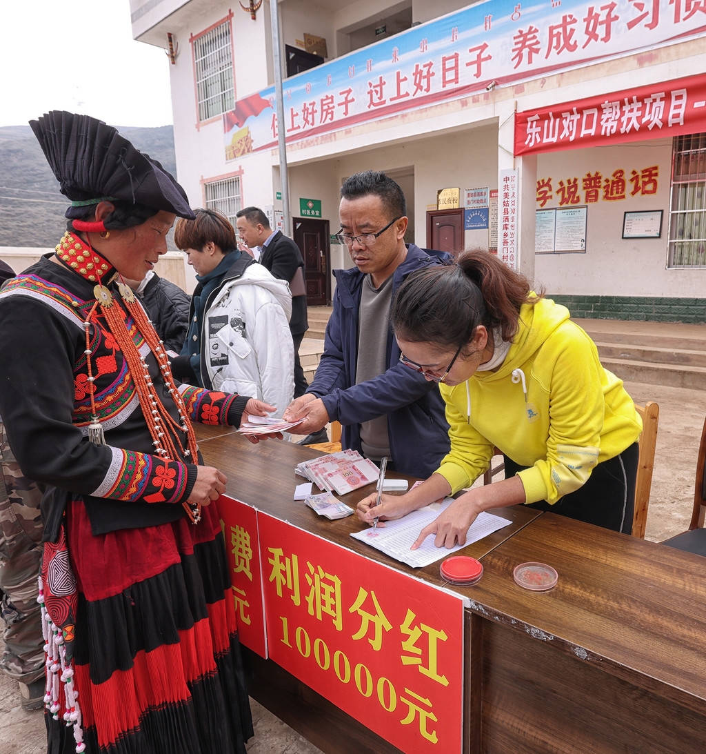 11月13日,彝历新年前夕,凉山州美姑县洒库乡吾门村两委给村民“发钱”了。