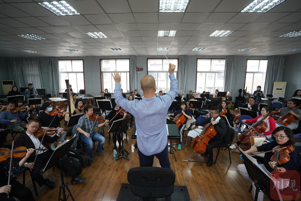 11月16日,在热烈而庄重的管弦乐曲中,四川爱乐乐团在成都市青羊区驻地完成了演出前的最后一次排练,11月17日,他们将在成都锦江大礼堂举行的四川省抗击新冠肺炎疫情和防汛救灾表彰大会上亮相,演奏《欢迎进行曲》、《欢送进行曲》两首曲目,用音乐向奋斗在一线的英雄们致敬。
