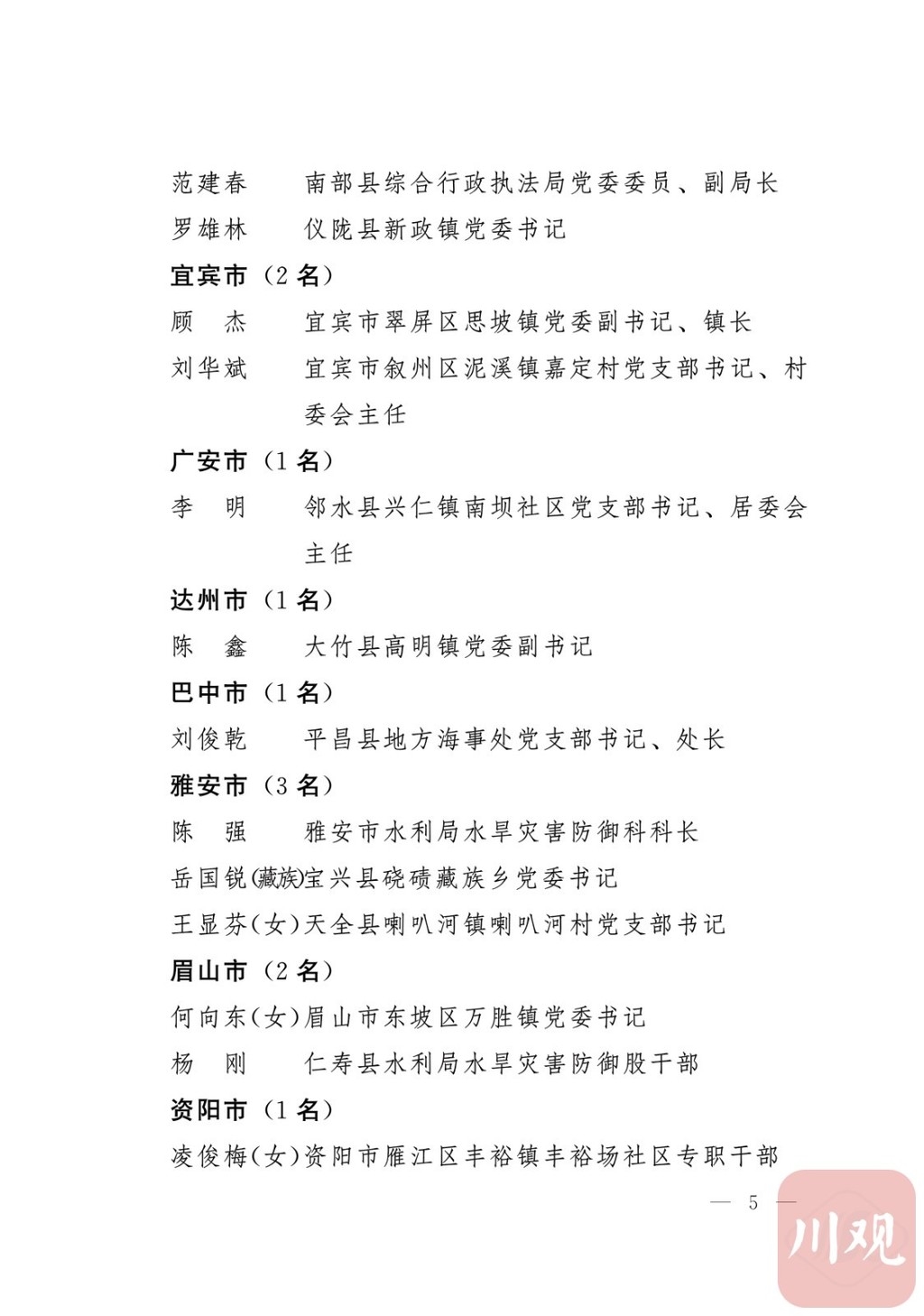 关于表彰四川省防汛救灾优秀共产党员