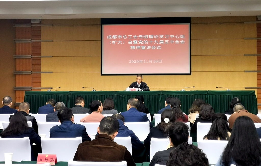 11月17日记者从成都市总工会获悉,成都市总工会日前召开党组理论学习中心组(扩大)会暨党的十九届五中全会精神宣讲会议。成都市总工会党组书记、常务副主席、中心组组长张余松就党的十九届五中全会精神进行宣讲,中心组全体成员及市总机关全体干部、所属企事业单位班子成员共122人聆听宣讲。