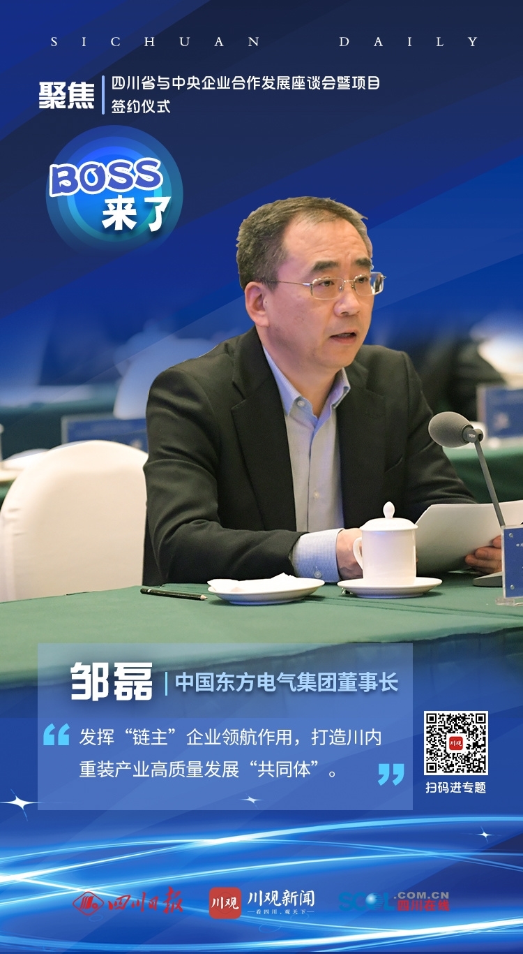 连续三年经营指标逆势增长!在四川省与中央企业合作发展座谈会暨项目签约仪式上,邹磊透露了这一佳绩。