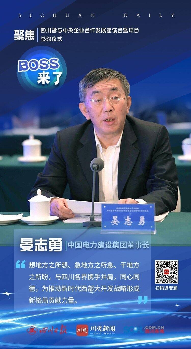 ——为四川推动高质量发展再加劲。当前,中国电建已在成都成立了“中国电建西部区域总部”“中电建西部建投公司”。下一步,中国电建愿进一步优化集团力量布局,想地方之所想、急地方之所急、干地方之所盼,与四川各界携手并肩,同心同德,为推动新时代西部大开发战略形成新格局贡献力量。
