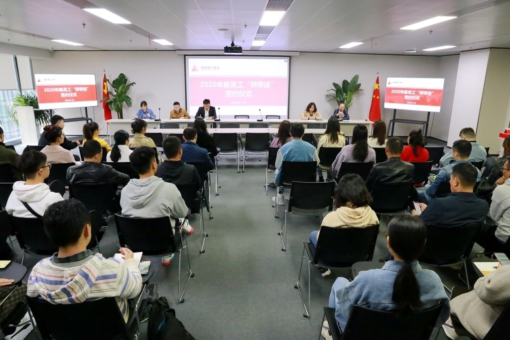 11月17日,成都建工装饰装修有限公司工会举行2020年新员工“师带徒”签约仪式,27位新员工与师傅现场签订“师带徒”协议,通过“传、帮、带”人才培养模式,推动新员工在学中干、干中学,尽快实现理论和实践的有效衔接,提升专业技能水平和综合素质能力,有效促进新员工成长成才。