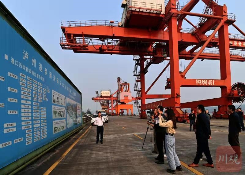 泸州拥有长江“黄金水道”136公里,在龙马潭区辖区内,坐落着四川第一大港——泸州港。走在在码头作业平台,一幅巨大的“港口水污染物防治整改示意图”向来访者讲述着泸州港的治污故事。