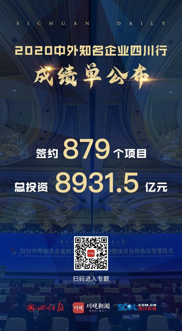 四川与国内外投资者签约项目879个,签约项目总额8931.5亿元。