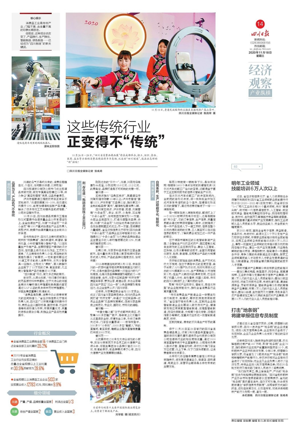 消费品工业是传统产业,门槛不高、含金量不高的印象长期存在。但现在,这种观念该改变了。产品换代、生产换线、智能制造、绿色制造……已经成为“四川制造”的新关键词。