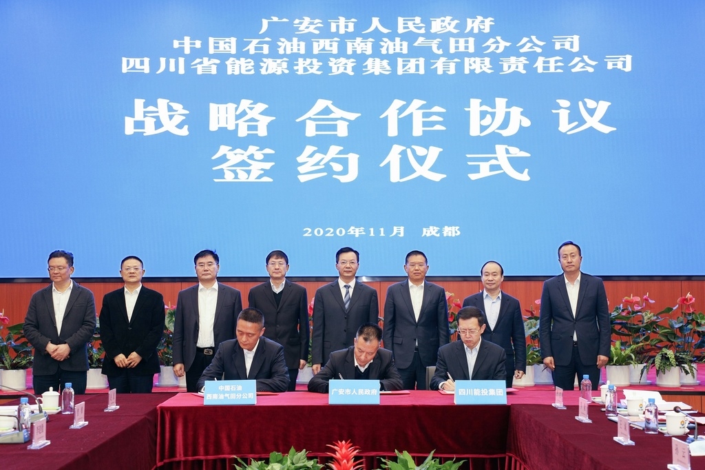 11月18日,在2020中外知名企业四川行活动中,广安和中国石油西南油气田分公司及四川省能源投资集团有限责任公司签订战略合作协议,三方将合作在广安经开区建设四川能投广安化工产业园项目,助力广安能源化工项目再上台阶。