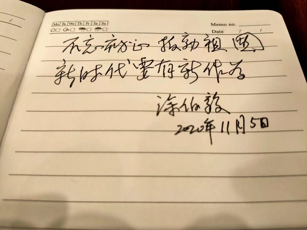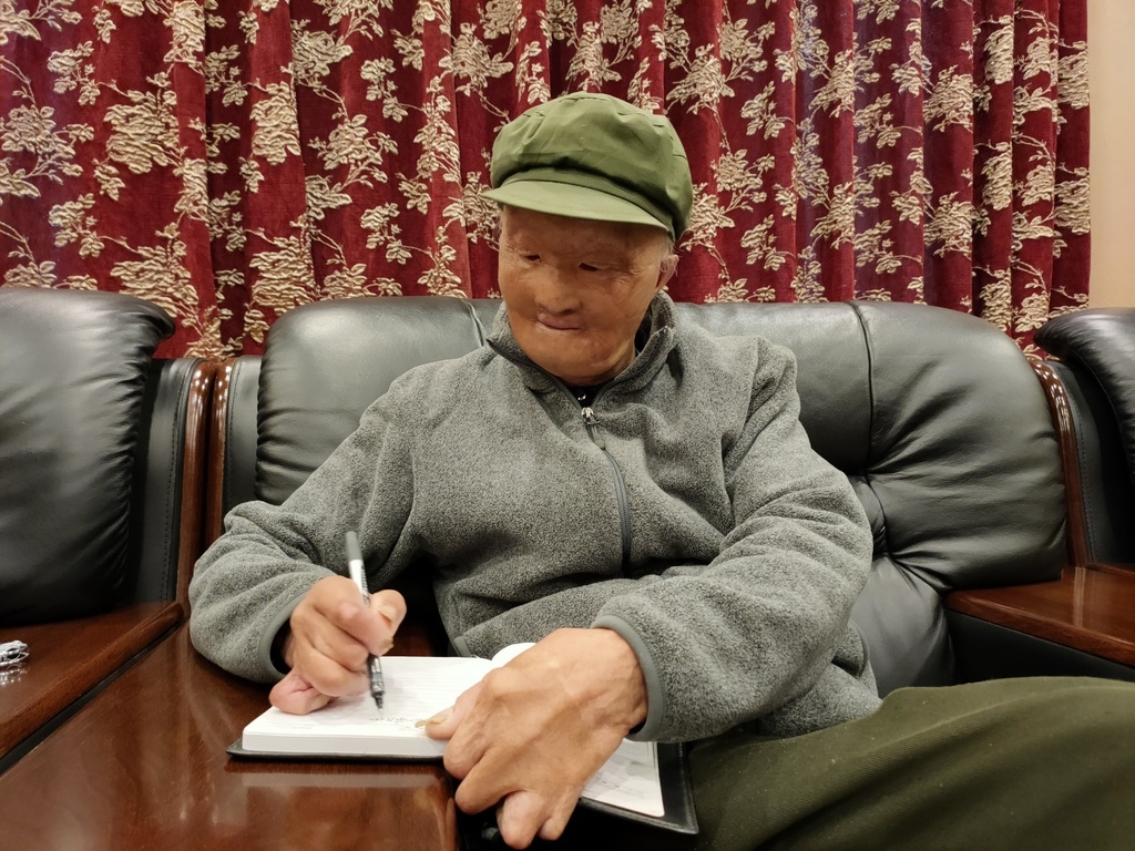 “你可以教我孙子唱一段《东方红》吗?”眼看着纸条即将被写满,老大爷写下了这样一句话。“嗯。”涂伯毅点了点头,作为队伍里的文艺骨干,唱一首《东方红》对他来讲,是小菜一碟。