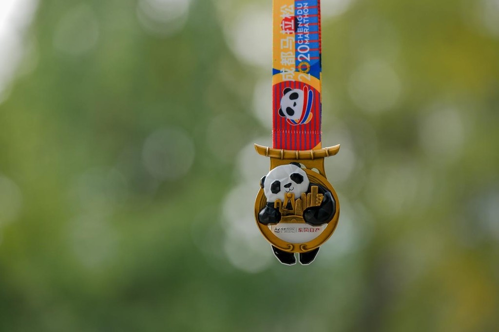 新闻发布会上,2020成都马拉松的完赛奖牌和比赛服也新鲜出笼。在今年的奖牌设计中,熊猫宝宝化身成充满力量感的城市守护神,伸出双臂,环抱着成都这座兼具古典与现代化的城市,也将成都国际化大都市的风貌与国宝熊猫的风采巧妙融合。奖牌设计把成都的人文气质、地标建筑、城市特点三个维度无缝融合,采用了建筑浮雕和钻石切割面的雕刻工艺,呈现方式上持续创新,追求立体造型,让奖牌更加像是一件别具一格的艺术品,体现出蓉城深厚的文化内涵和逐渐崛起的恢弘气势。比赛服采用了汉字“成马”浑然天成的组合图形,传达了中国感的成马,也兼具了艺术性和力量感的表达。同时,憨态可掬的熊猫穿插其中,更多了一份亲和力的表达。整体设计赋予图形的力量感,展示了品牌张力和年轻一代街头文化的个性。