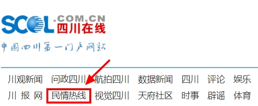 有网友可能会问,四川在线网站上哪里可以进入“民情热线”频道呢?大家注意喽,在四川在线首页顶部导航区以及首屏右侧品牌栏目区,均可以点击进入民情热线频道。
