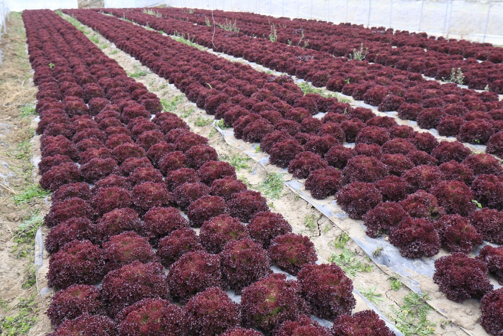在另一间大棚里,横竖成排地生长着紫红色的蔬菜,每一颗成团如球,手感细腻,触肤温润。“你尝一尝,香甜香甜的。”徐世城扯下一片菜叶,吃了一口,然后递给记者。