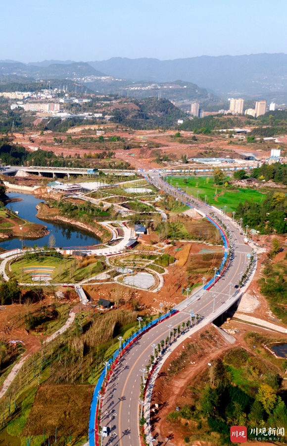 2020年11月18日,空中俯瞰由中国水利水电第十工程局有限公司承建中的通江县高明湖公园。这里以前是一片荒芜地,近年来,四川省巴中市通江县深度推进生态修复和环境治理,对荒芜地进行生态修复和景观提升,打造生态优化、科普教育、自然野趣和休闲游览为内容的生态湿地公园。现在这里成为市民休闲度假的好去处。