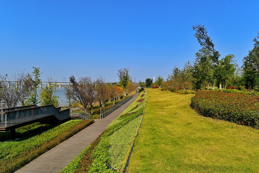 植物的选择大有学问。陆国文透露,他们在低地带河道种植了石菖蒲、再力花等植被,达到净化水质的作用;中地带种植大小黄杨、小叶女贞、苏铁等草灌植物,在中地带与低地带之间形成缓冲带,下雨时可以滞留雨水;高地带种植银杏、柳树等乔木,起到固土和护坡的作用,做到生态景观和防护需求的统一。“这些植物就是守护土壤的‘卫士’,也是我们海绵城市的重要组成部分。”