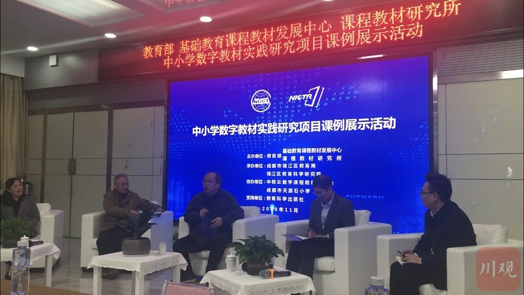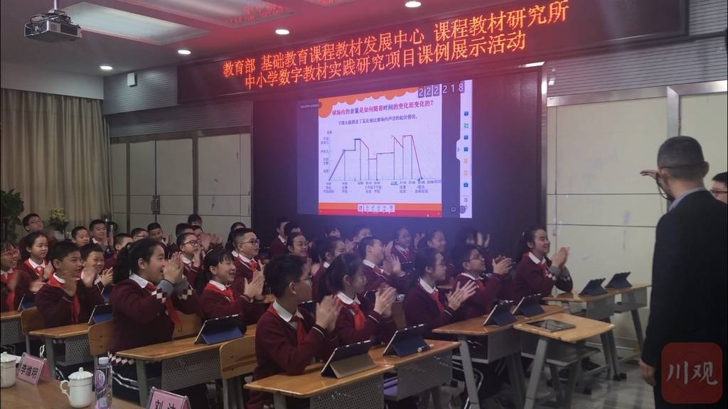 11月20日,由国家教育部基础教育课程教材发展中心主办的“中小学数字教材实践研究”项目数学课例展示活动在成都锦江区开展。天涯石小学四年级和六年级两个班的同学和老师分别展示了数字教材场景下的《正负数》、《看图找关系》两节课。17个教育部基础教育课程改革实验区的教研员和教师,通过中教云数字课程教材云平台观看直播,锦江实验区数学学科也有部分老师参加了现场研讨活动。