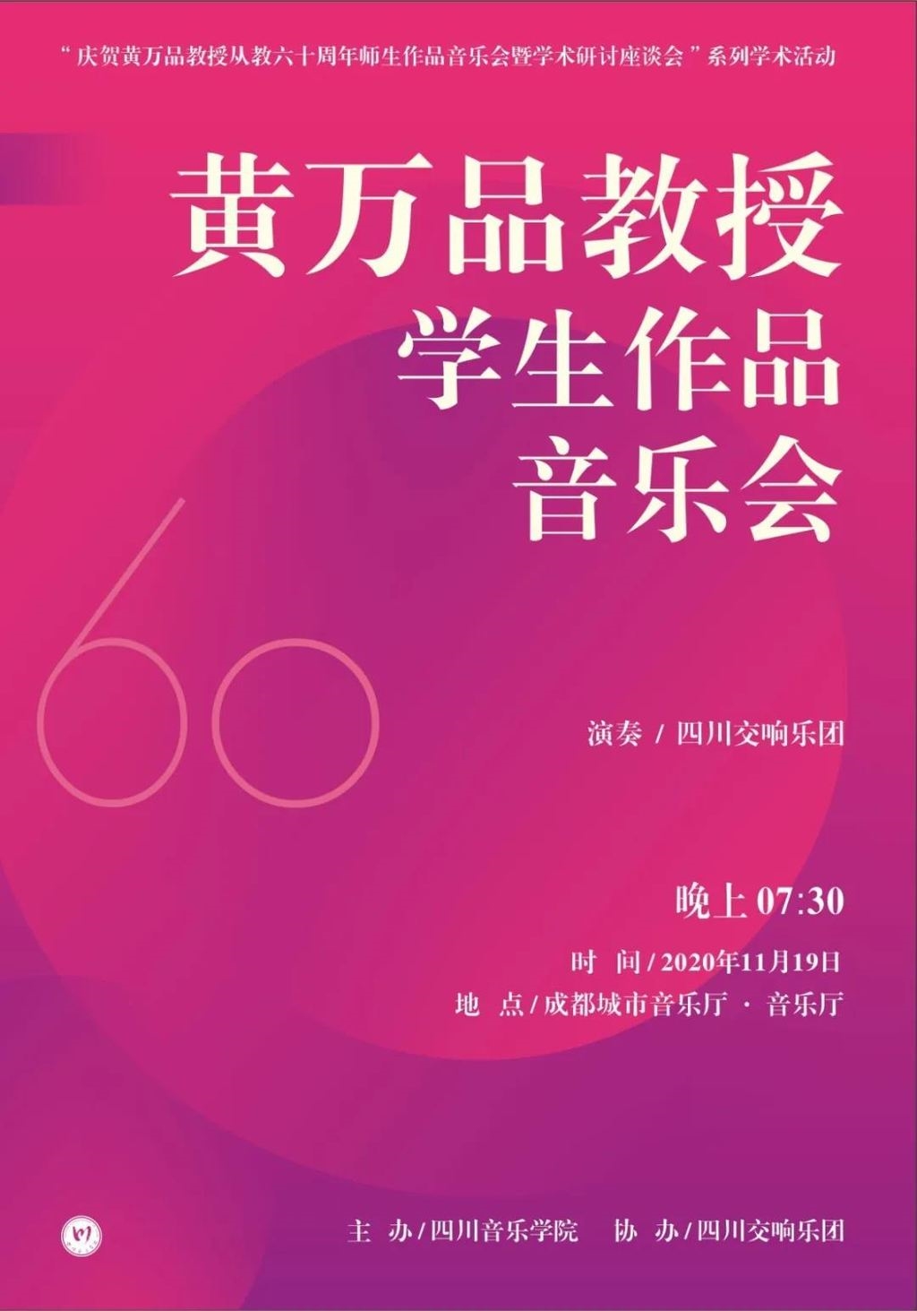 今年80岁的黄万品,已经从教60年了。11月19日晚,这位老人回到曾经任教的四川音乐学院,走进成都城市音乐厅,准备聆听一场名为“黄万品教授学生作品”的音乐会。这场国内高水准的音乐会,曲目中包含了他的学生、四川知名作曲家敖昌群、易柯、贾达群、姚恒璐的作品,不少“名家”学生也亲临现场探望德高望重的老师。