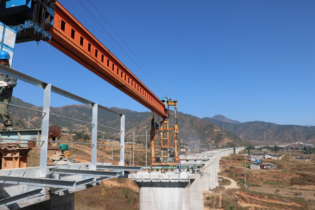 11月20日,成昆复线建设仅剩的峨眉至米易段又有新进展——金凤村双线特大桥首片预制T梁精确镶嵌,大桥建设进入铺架阶段,为成昆复线冕宁至米易段2021年底建成奠定了坚实的基础。
