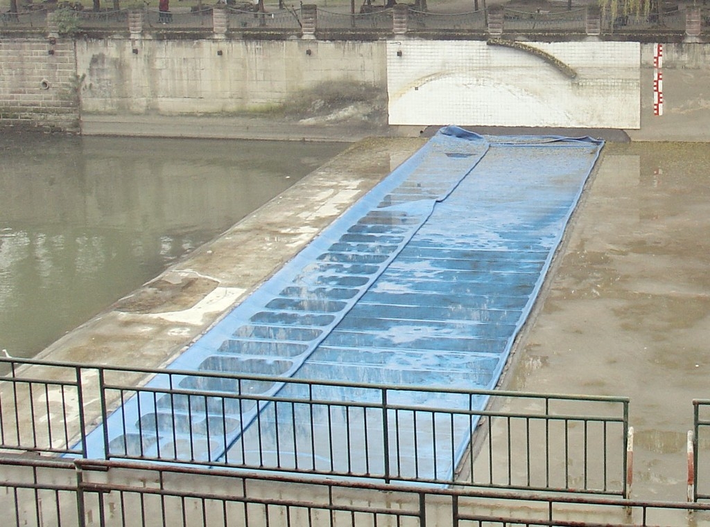 橡胶坝是个“舶来品”,属薄壁柔性结构,是随着高分子合成材料的发展而出现的一种新型水工建筑物。1957年世界上首座橡胶坝诞生于美国洛杉矶,此后几十年风靡全球,成为城市内河调节水位的主要水利设施。中国第一座橡胶坝是北京右安门橡胶坝,建于1966年,该坝曾两次更换坝袋,至今运行正常。