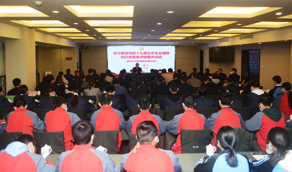 11月20日上午,学习贯彻党的十九届五中全会精神四川省委宣讲团新时代文明实践青年宣讲分团来到南充市蓬安县开展宣讲。宣讲分团负责人、共青团四川省委书记张荣作宣讲报告,来自该县思政课青年教师,党校青年教师,中职和中学学生代表,各乡镇(街道)团委书记等青年代表,共100余人参加宣讲会。