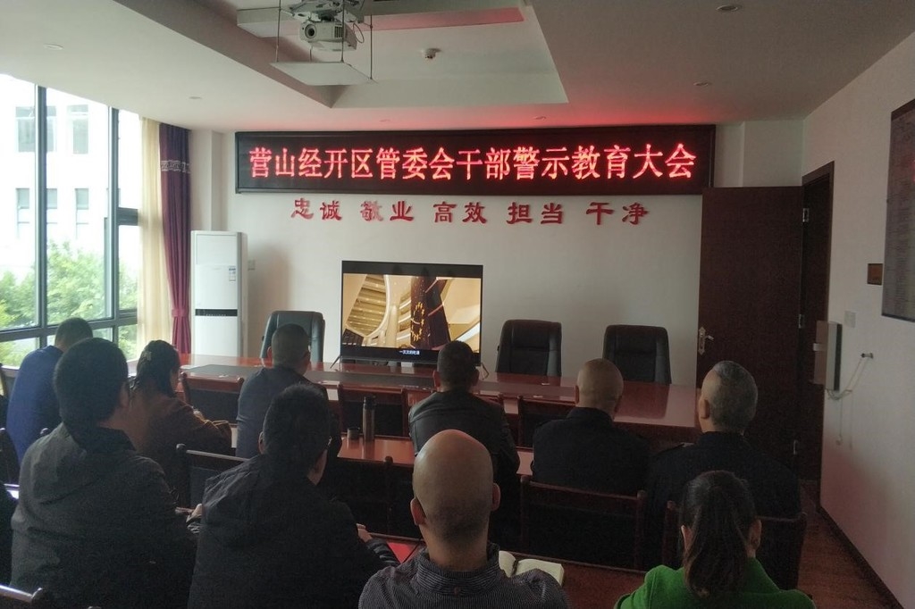 营山县经开区组织干部职工观看警示教育片《越界》。 营山县纪委供图