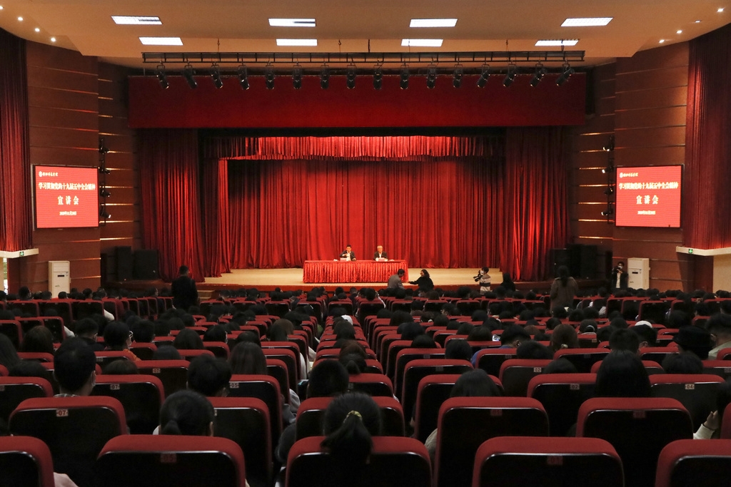 根据四川省委统一安排部署,11月20日下午,省委宣讲团高校分团在内江师范学院进行了党的十九届五中全会精神宣讲会。四川省社科院副院长、研究员郑泰安作宣讲报告。内江师范学院、内江职业技术学院、内江卫生与健康职业学院、川南幼儿师范高等专科学校部分师生代表共计500余人参加宣讲会。