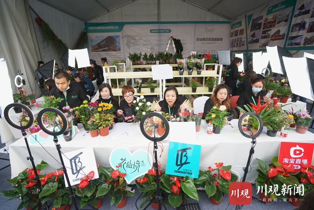 11月20日花博会现场,10余位温江区寿安镇的花农们在镜头前“带货”自家种植的花卉,为网友介绍花的花期、花语、花型。今年突如其来的新冠肺炎疫情给主打线下零售的花卉产业带来沉重打击,但也促进了花卉线上销售模式的快速发展,成为营销新热点。本届花博会展区特别设置了“抖音云上花博会”版块,上百名“头部网红”深入博览会现场和花木产业基地,通过网络直播和短视频等形式,助力宣传推广。