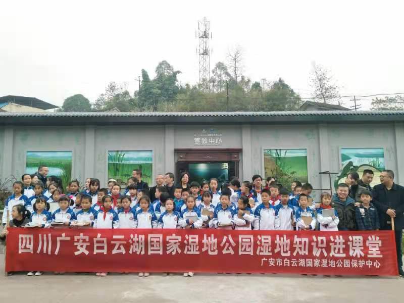 11月20日,广安区浓溪镇全民小学二至六年级的57名小学生来到位于广安区浓溪镇的四川广安白云湖国家湿地公园宣教中心,上了一堂以前从未有过的课——湿地宣教和户外实践课。