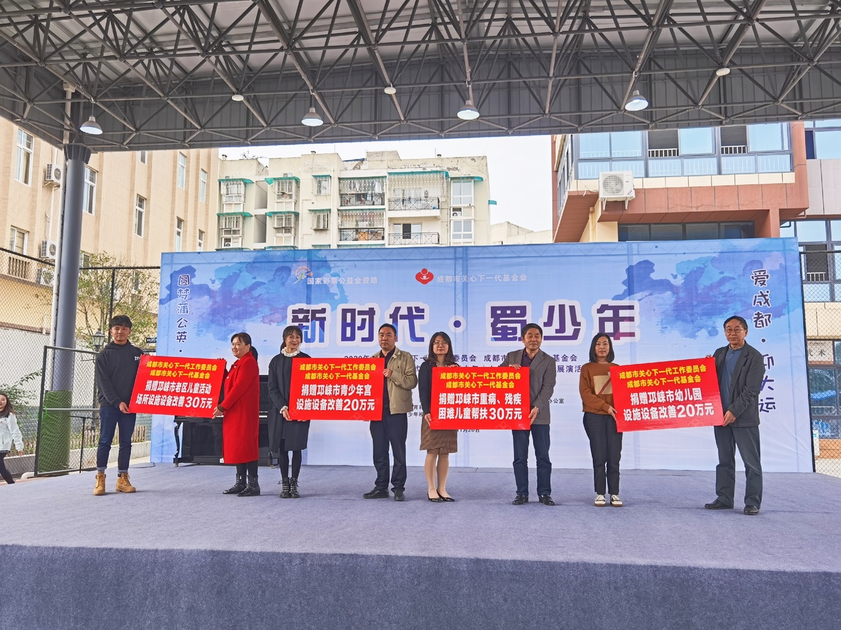 11月20日,成都市关工委、成都市关心下一代基金会在邛崃市青少年校外活动中心举行捐赠仪式,向邛崃市关工委捐赠100万元。