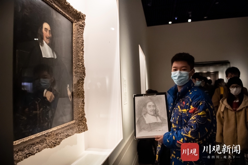 李卓航告诉记者,他学美术三四年了,听说成都有展,如今成渝交通一体化发展,乘坐高铁只需一个多小时,所以利用周末时间前来临摹学习原作,毕业之后他希望自己能考入俄罗斯列宾美术学院油画专业。