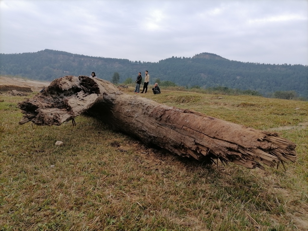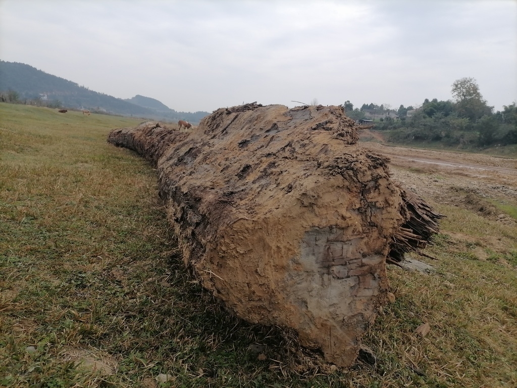 11月21日,记者从绵阳市梓潼县委宣传部获悉,日前,施工人员在梓潼县玛瑙镇龙台村进行河道清淤时,挖出一棵大树,后经梓潼县文物管理所鉴定,该树为一根巨型乌木。据悉,挖出该大树的地方在当地被叫作“乌木拐”,由于该小地名的由来或与乌木有关且该地也曾经挖出过乌木,挖掘机挖出大树后,当地村民立即告知了村干部。当地与施工方协调后,将该大树移送至河滩上安放,并由专人守护。据介绍,该乌木根部呈红褐色,树干呈乌黑色,树长约13米,最大直径约1.5米,最小直径约1米,一个成年人难以环抱。