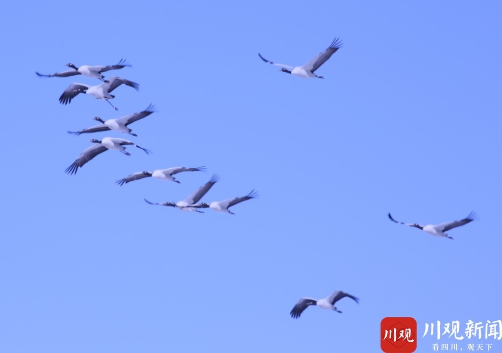 据了解,每到初冬时节,在若尔盖湿地中生活的国家一级保护动物黑颈鹤开启了一年一度“春运”模式,结群南迁越冬。根据若尔盖当地提供的近年来的鸟类监测数据,随着生态的变好,若尔盖为四川省最大的黑颈鹤繁殖地,黑颈鹤数量已接近2000只,数量约占全球黑颈鹤总数的18%。