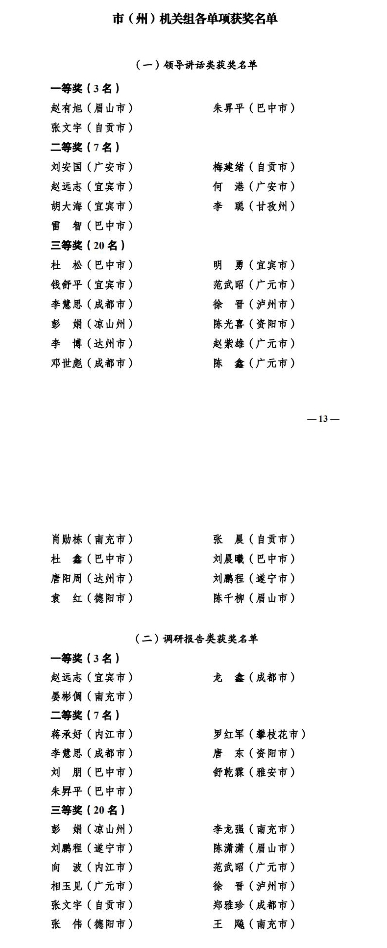 11月23日,全省第四届机关公文写作大赛颁奖大会在成都举行,宣读了获奖情况的通报,并为部分获奖选手和单位代表颁奖。